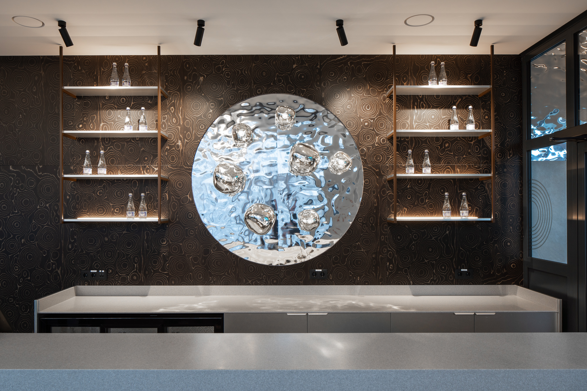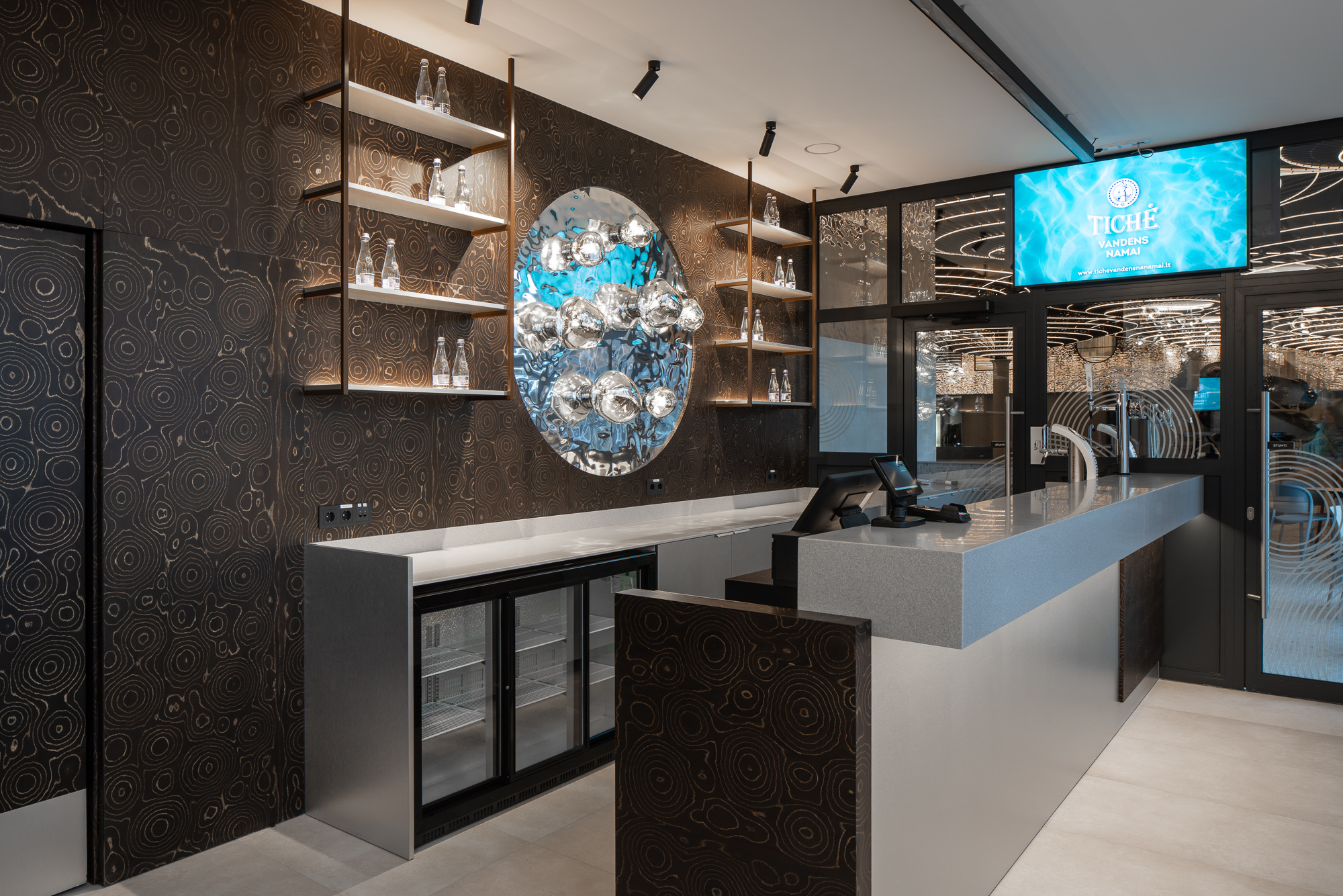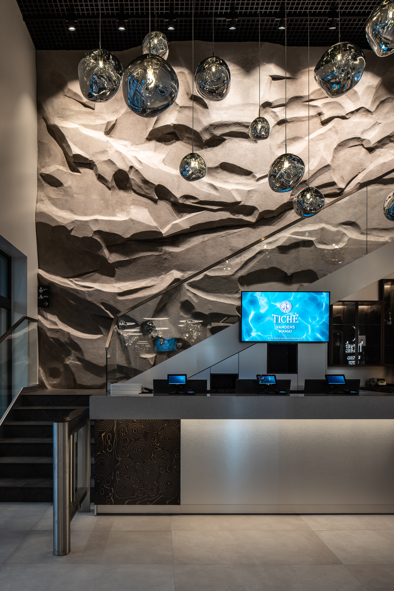 Idėja kyla iš vieno lašo. Jo kritimo, išsiplėtimo, išnykimo. Šis momentas tampa erdve. Lenktos linijos, išsklaidyti atspindžiai ir sluoksniuotos tekstūros kuria atmosferą, kuri yra ir tiksli, ir sunkiai apčiuopiama.