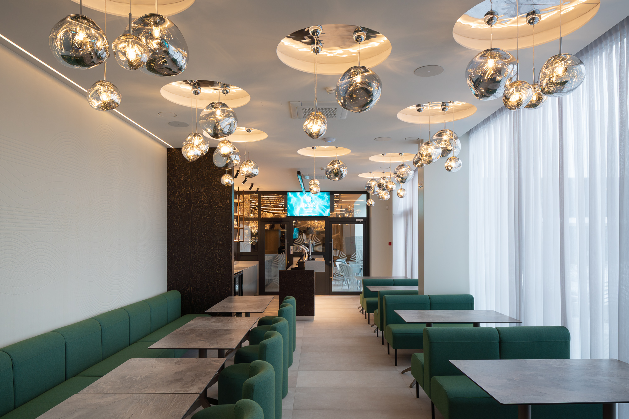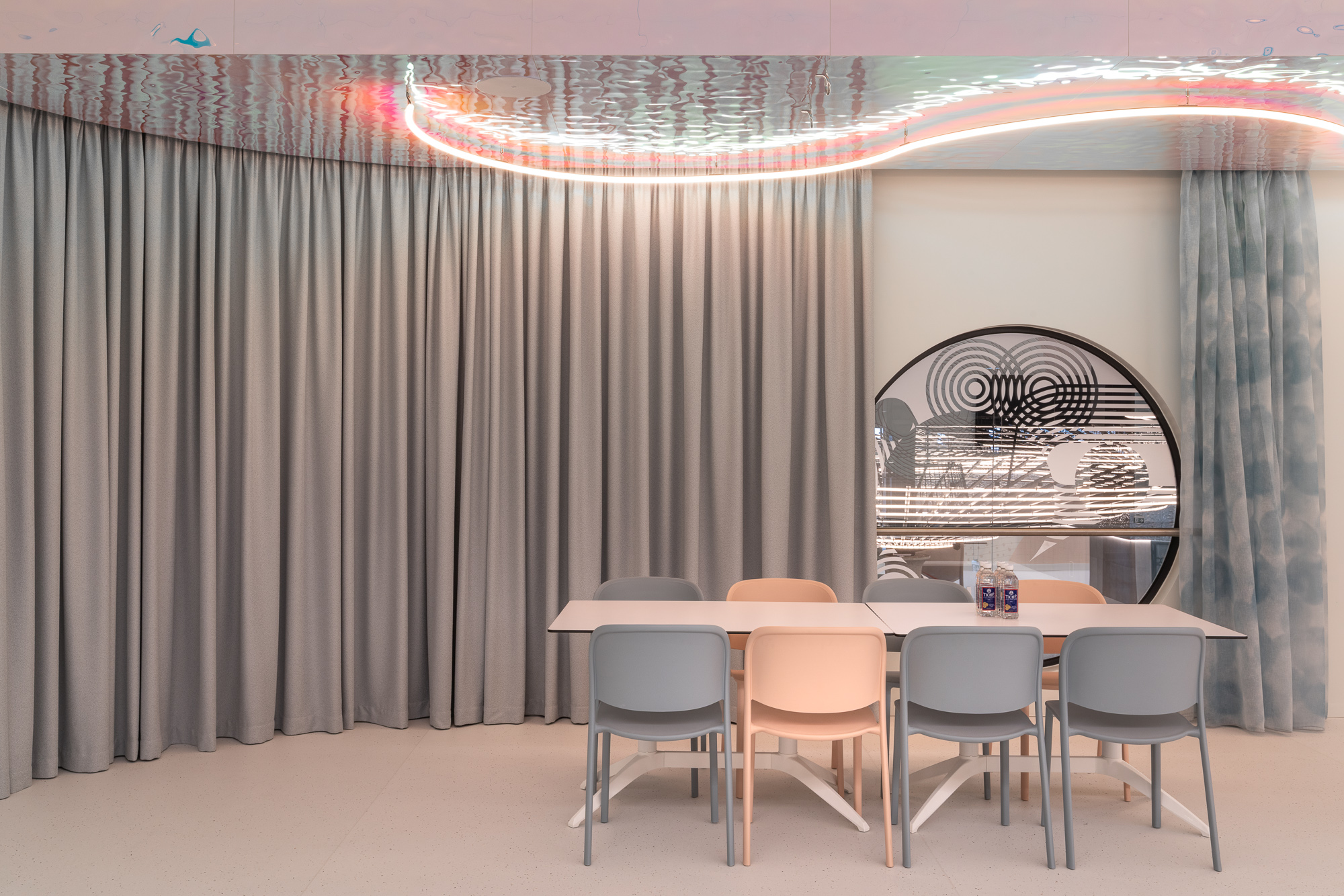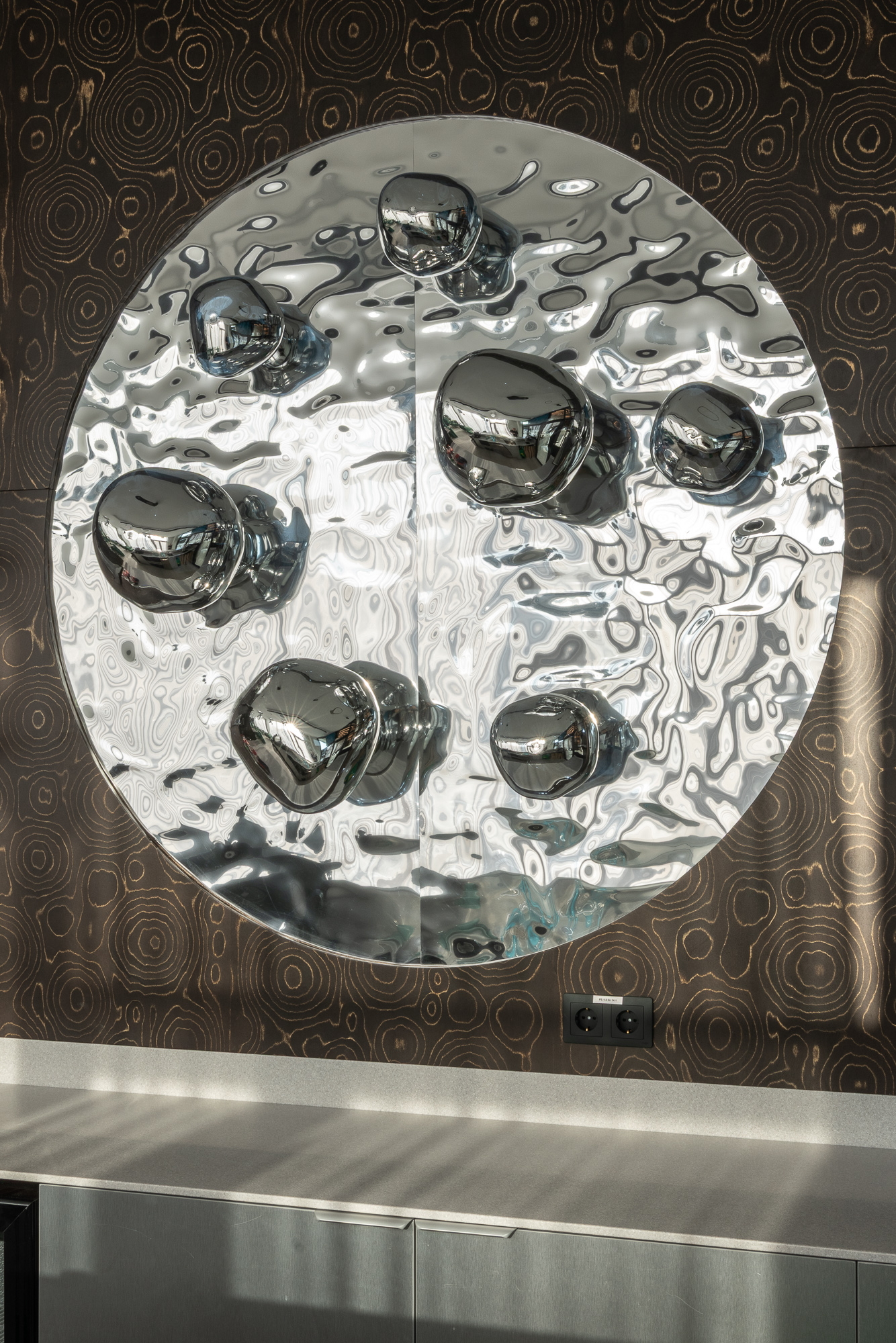 Idėja kyla iš vieno lašo. Jo kritimo, išsiplėtimo, išnykimo. Šis momentas tampa erdve. Lenktos linijos, išsklaidyti atspindžiai ir sluoksniuotos tekstūros kuria atmosferą, kuri yra ir tiksli, ir sunkiai apčiuopiama.