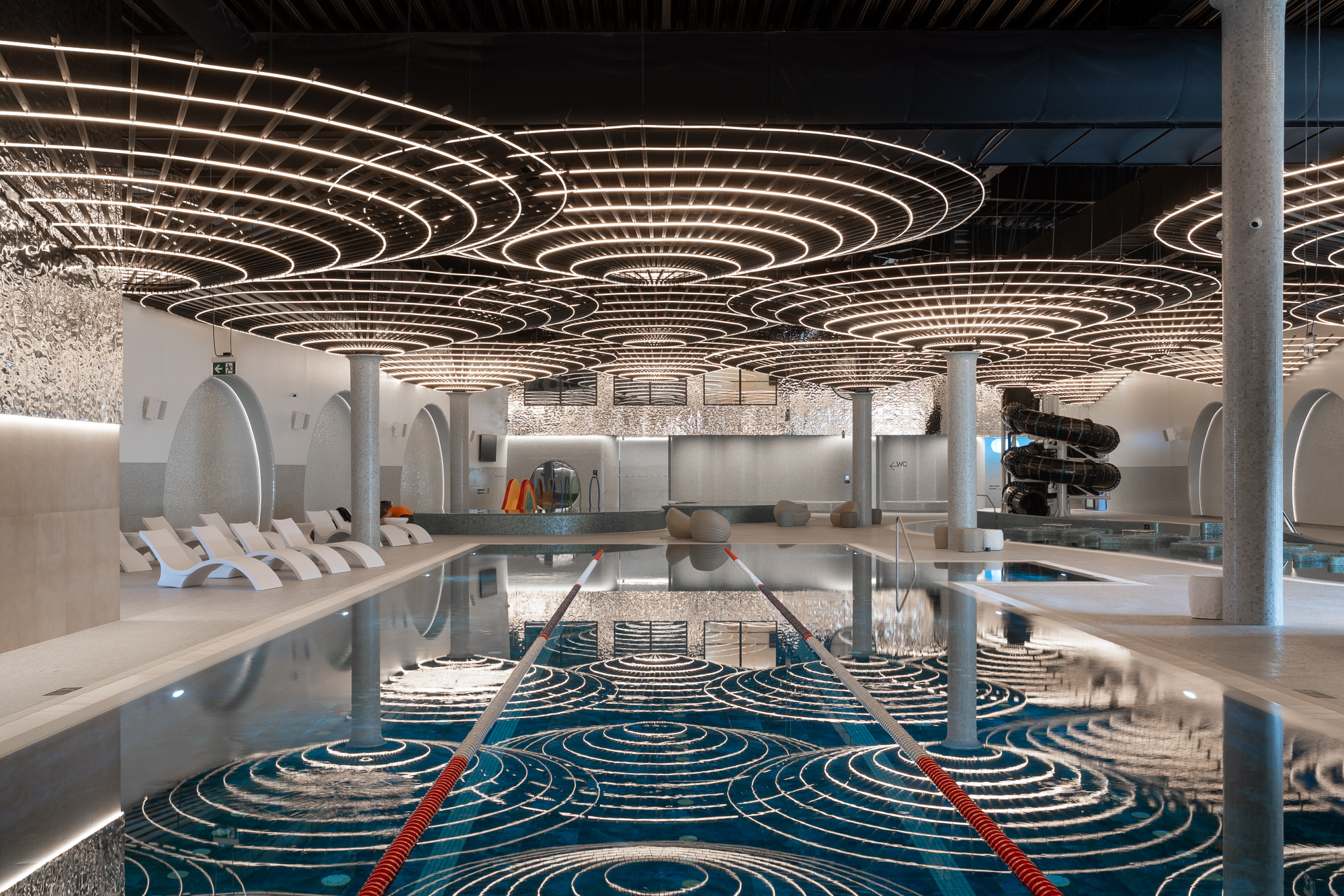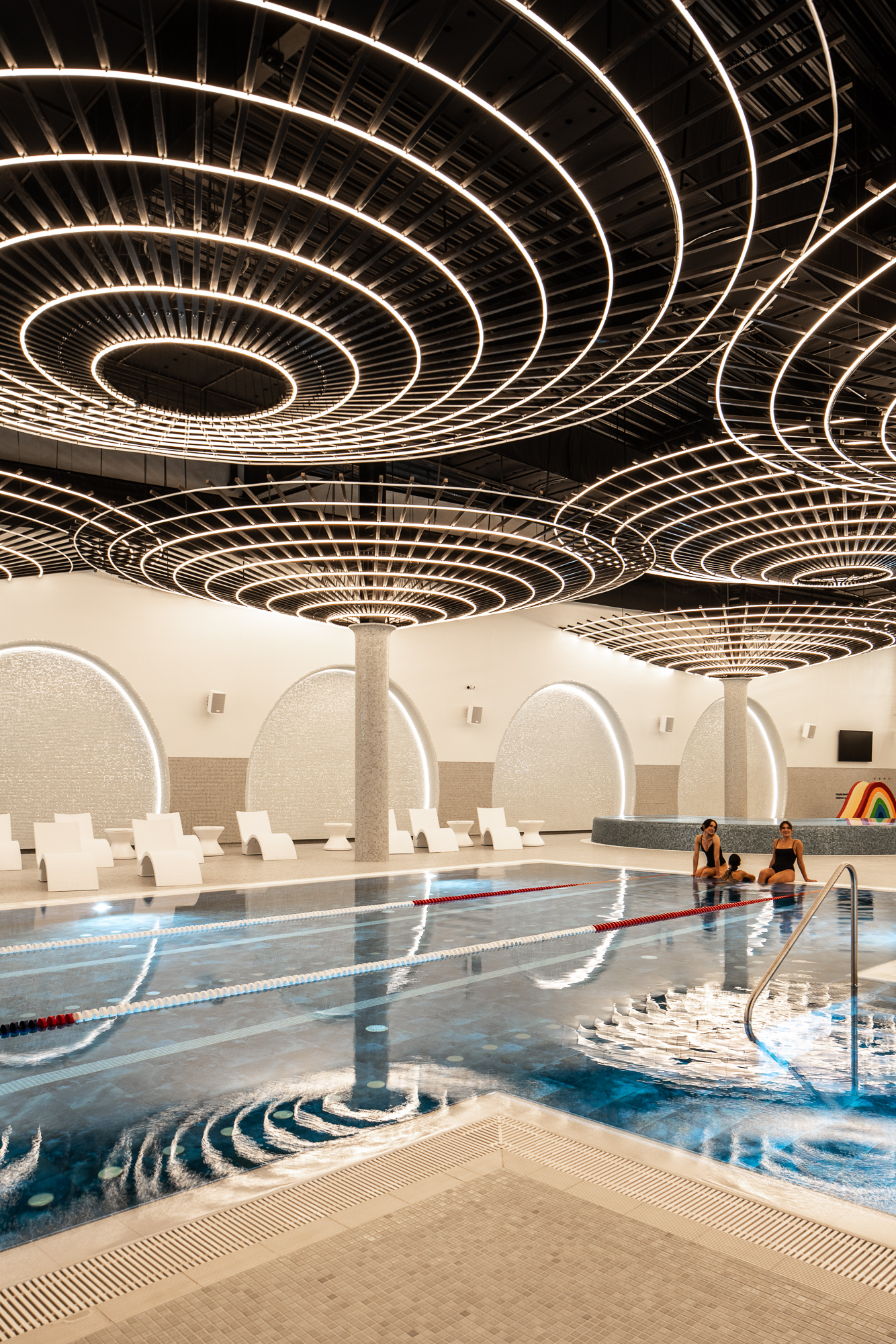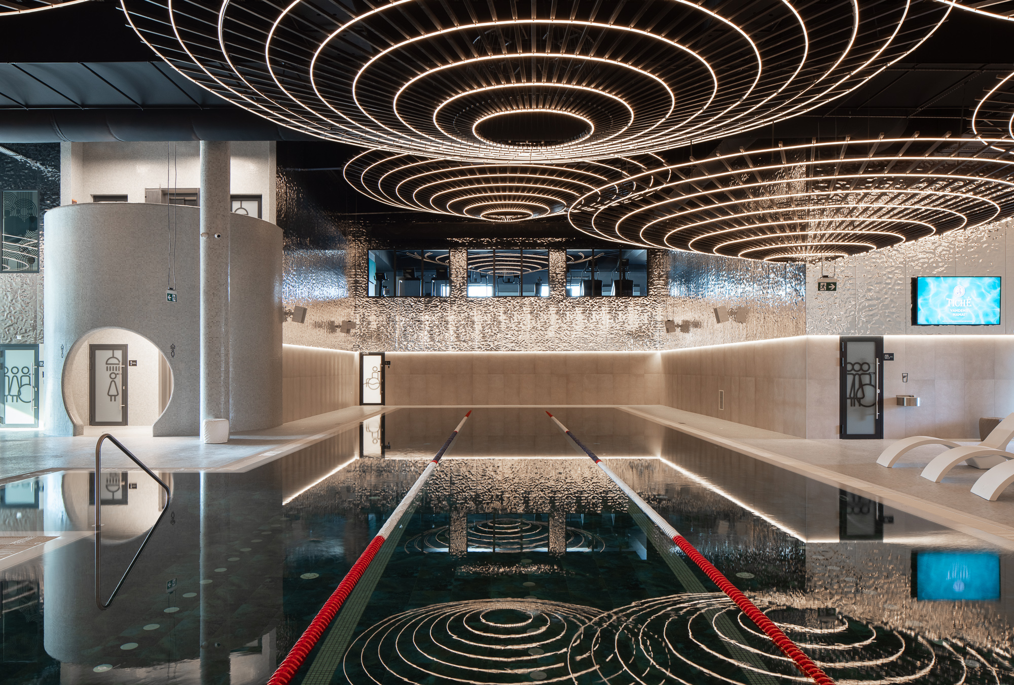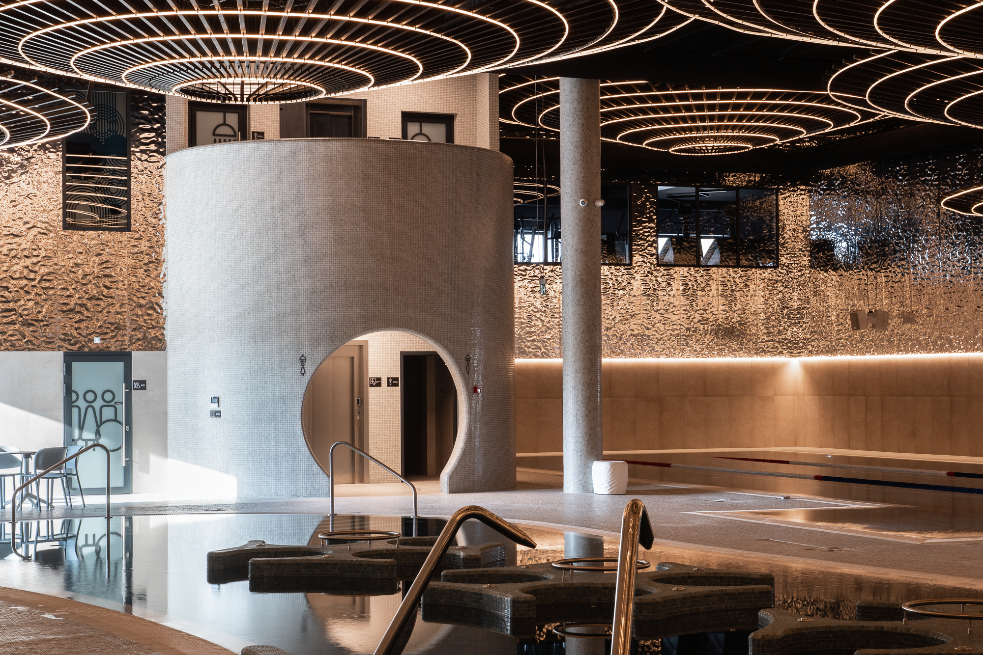 SPA sveikatingumo centras suvokiamas kaip švelnių perėjimų seka, o ne aiškiai apibrėžtų patalpų rinkinys. Erdvės atsiskleidžia palaipsniui, tarsi vandens paviršiumi sklindantys ratilai. Nėra vieno centro — vietoje to kuriamas vientisas, subtilių ryšių tarp šviesos, medžiagos ir judėjimo laukas.